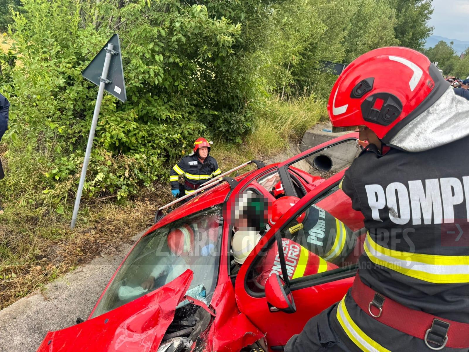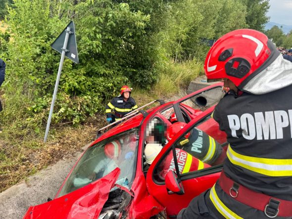 UPDATE. Autoturism lovit de tren. Trei tineri se aflau în mașină