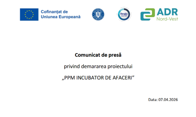 ACTUALITATE: Comunicat de presă privind demararea proiectului „PPM INCUBATOR DE AFACERI”