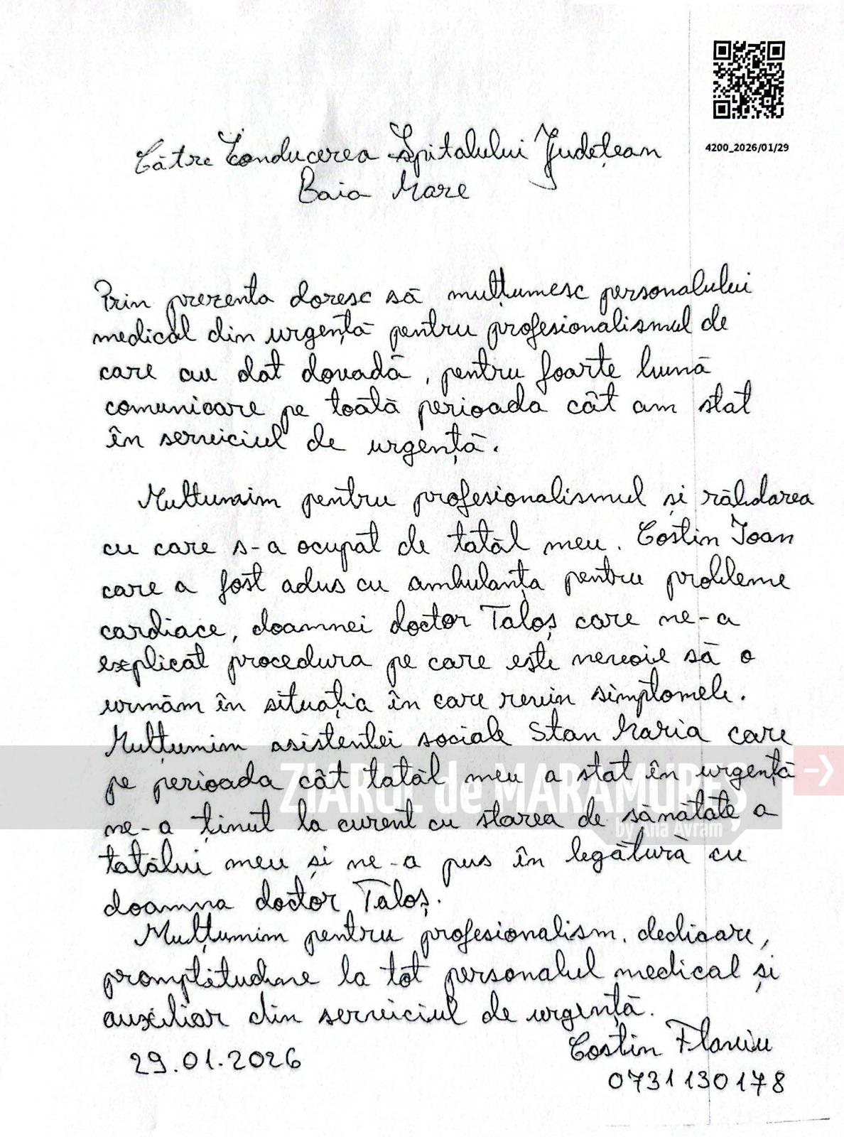 Președintele Consiliului Județean Maramureș, Gabriel Zetea a declarat că aceste scrisori sunt o dovadă clară a faptului că, dincolo de statistici și rapoarte, sistemul public de sănătate înseamnă, înainte de toate, oameni și umanitate: