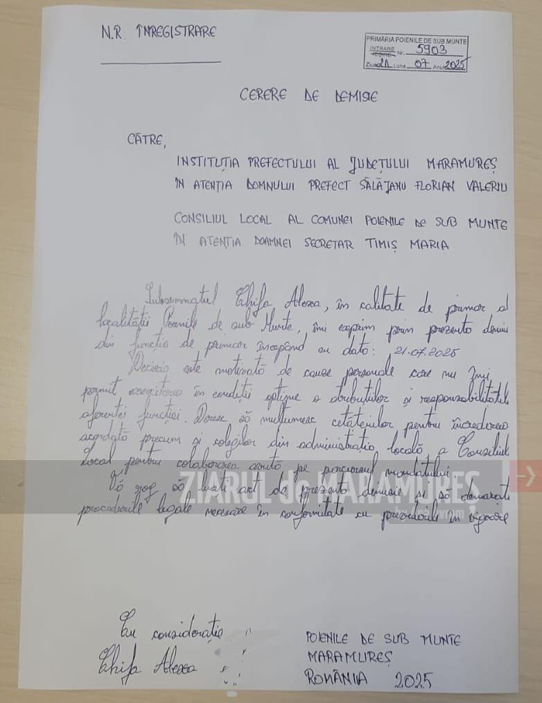 Alexa Chifa, primarul din Poienile de Sub Munte și-a dat demisia astăzi, 21 iulie 2025 - Ziarul de Maramures