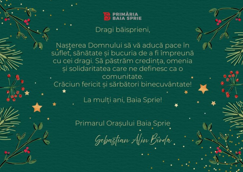 Alin Sebastian Bîrda, primarul orașului Baia Sprie: Crăciun fericit și sărbători binecuvântate!