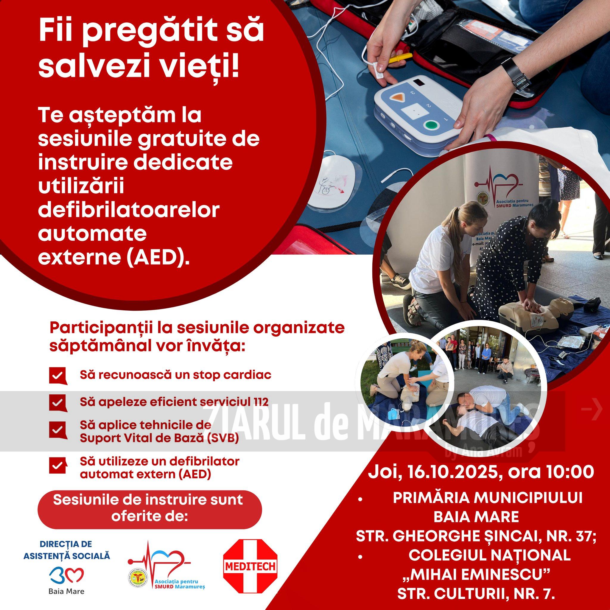 Direcția de Asistență Socială Baia Mare în parteneriat cu Asociatia pentru SMURD Maramures și Meditech SRL organizează, în fiecare săptămână, sesiuni gratuite de instruire dedicate utilizării defibrilatoarelor automate externe (AED), în punctele cheie din oraș.