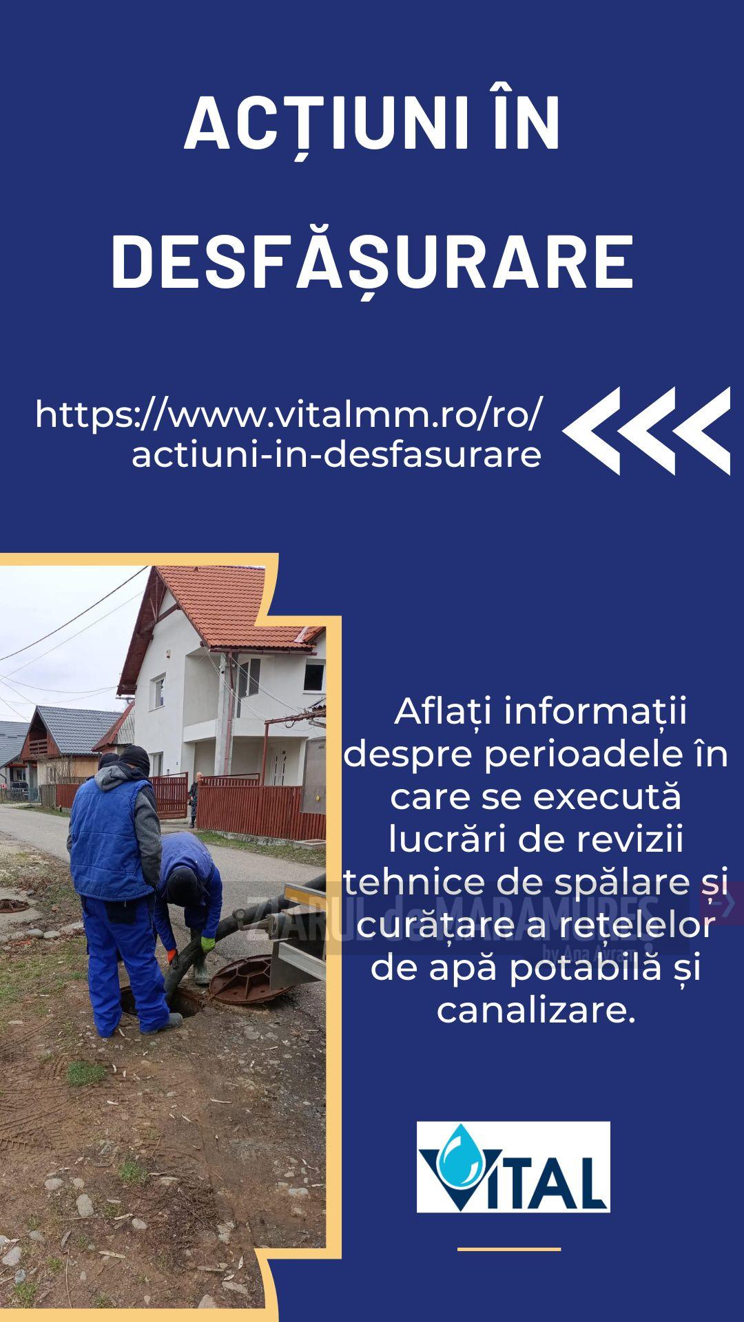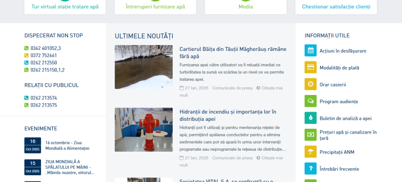 Informațiile sunt foarte uşor de aflat: cu un simpu click pe rubrica ACȚIUNI ÎN DESFĂȘURARE -CLICK, aflată în partea dreaptă, pe prima poziție la INFORMAȚII UTILE. Această rubrică asigură un acces mult mai rapid și transparenţă în ceea ce priveşte întreținerea infrastructurii rețelelor de apă și de canalizare!