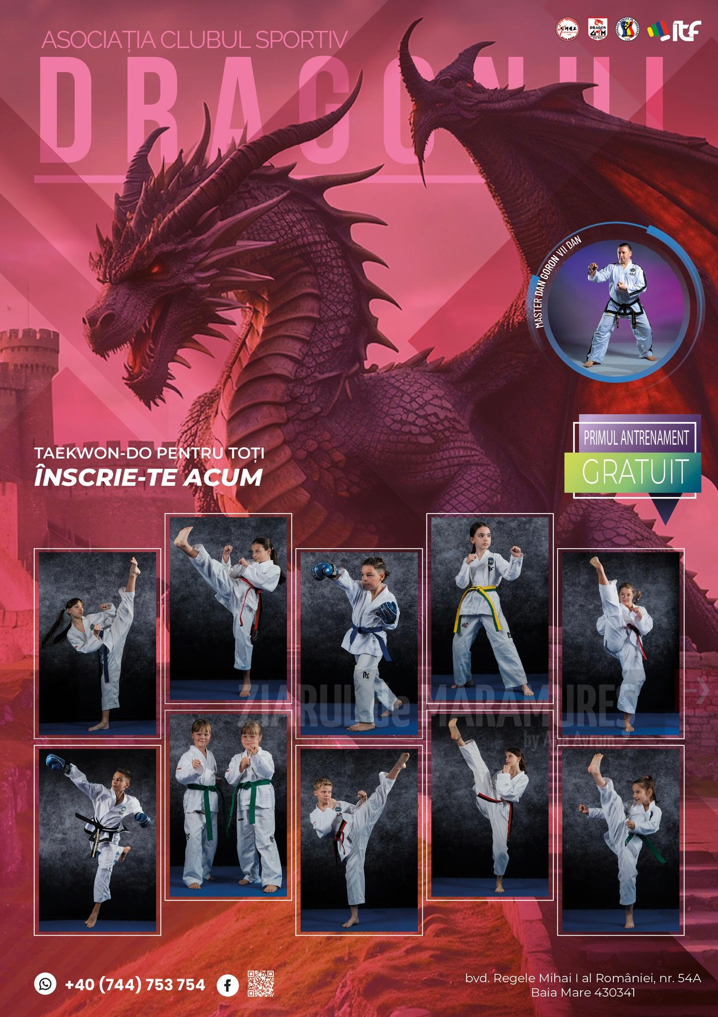 Clubul Sportiv Dragonul Baia Mare este consacrat in lumea sportivă locală, natională și internationala. Managerul clubului, Master Dan Goron este secretarul Federatiei Romane de Taekwon-do. Rezultatele merituoase obtinute de-a lungul celor 33 de ani de existenta au facut ca Drgagonul să se bucure de o reputatie extrem de bună, care face cinste municipiului si judetului Maramures. Clubul are in palmares numeroase titluri de vicecampioni si campioni europeni si mondiali, care a ridicat astfel stacheta cluburilor de profil din țară. Cei interesati sa faca performanta sau doar miscare, pot cere relatii la nr. de tel. 📲 744 753 754 – WhatsApp sau Messenger – ACS DRAGONUL BAIA MARE.