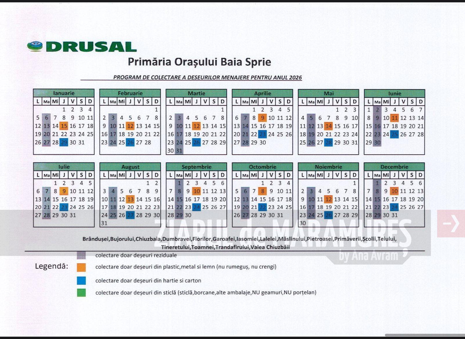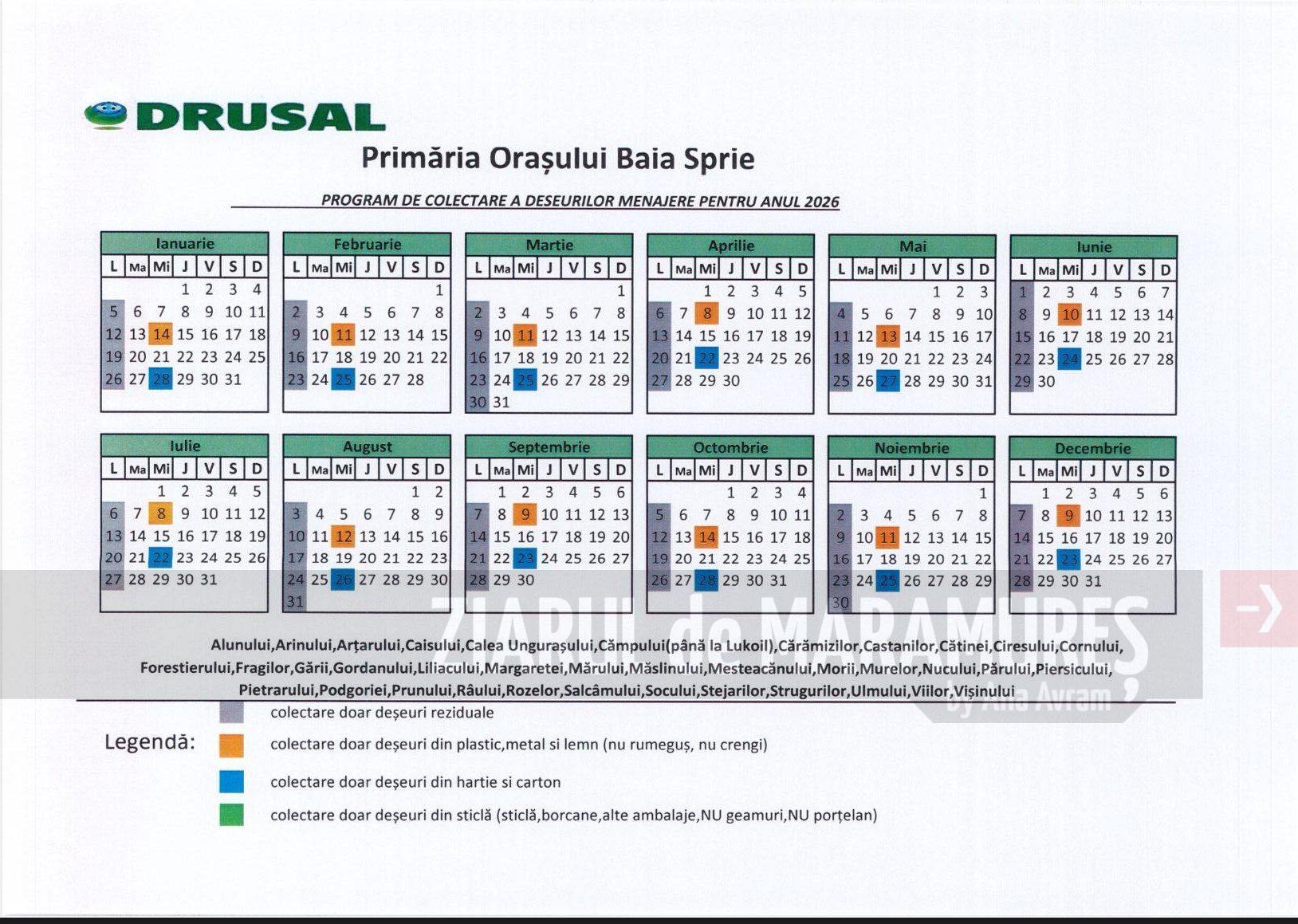 În urma discuțiilor purtate cu SC Drusal Primăria Baia Sprie anunță revenirea la programul de frecvență săptămânală la colectarea deșeurilor menajere.