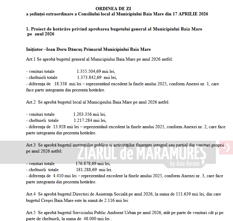 În cadrul Comisiei, primarul a punctat faptul că, pentru anul 2026: ”Este un buget de subzistență. În momentul de față asigurăm cheltuielile de functionare ale serviciilor publice si furnizarea serviciilor publice”. Primarul a pus accent pe programele de dezvoltare, atrase prin fonduri europene sau guvernamentale, unde si municipiul Baia Mare are o participatiune financiara, o cota parte, iar intentia primarului este ca aceste proiecte propuse să poată fi realizate pentru municipiu. Aceasta precizare a facut-o tot ieri, in cadrul Comisiei.