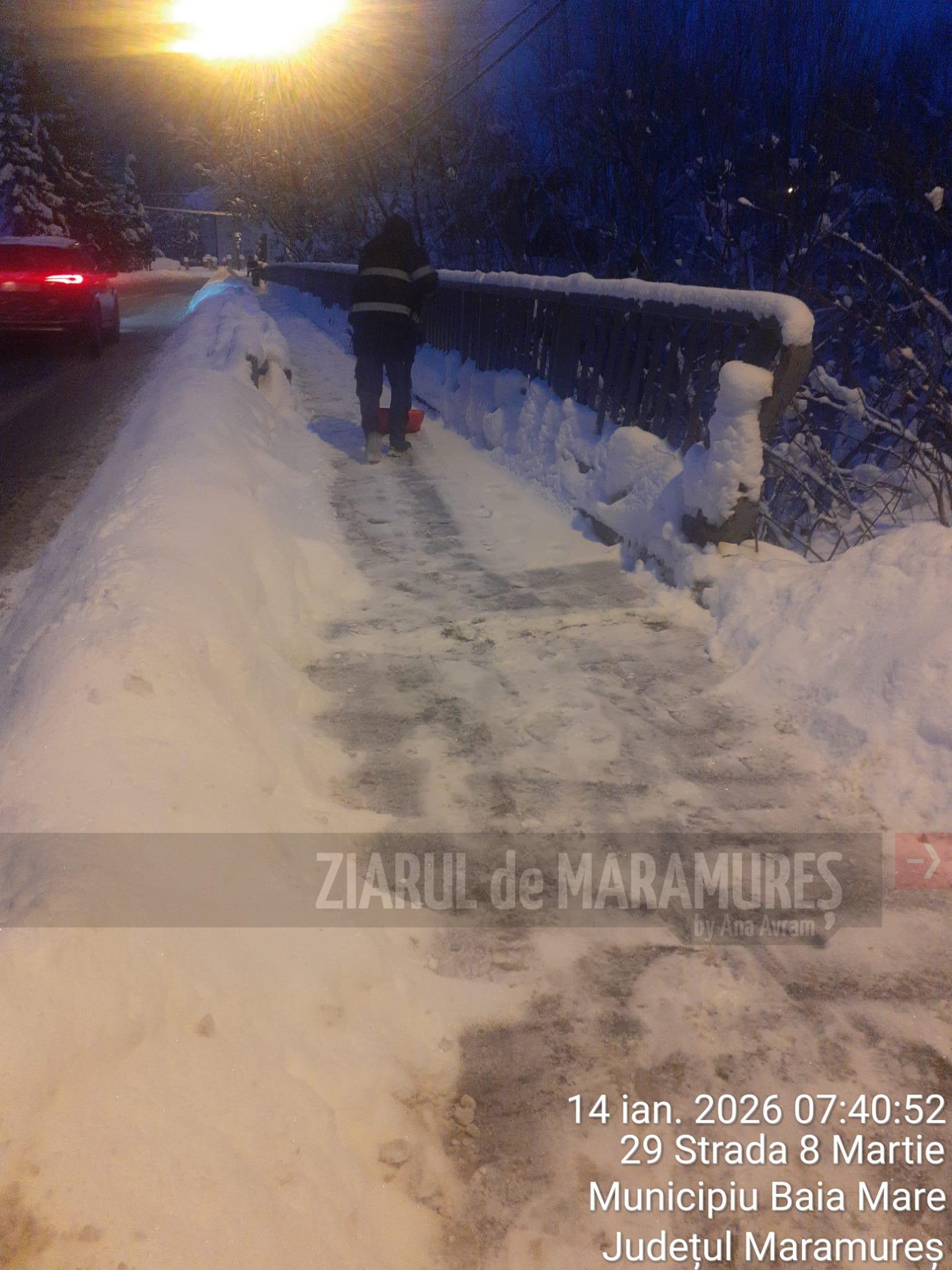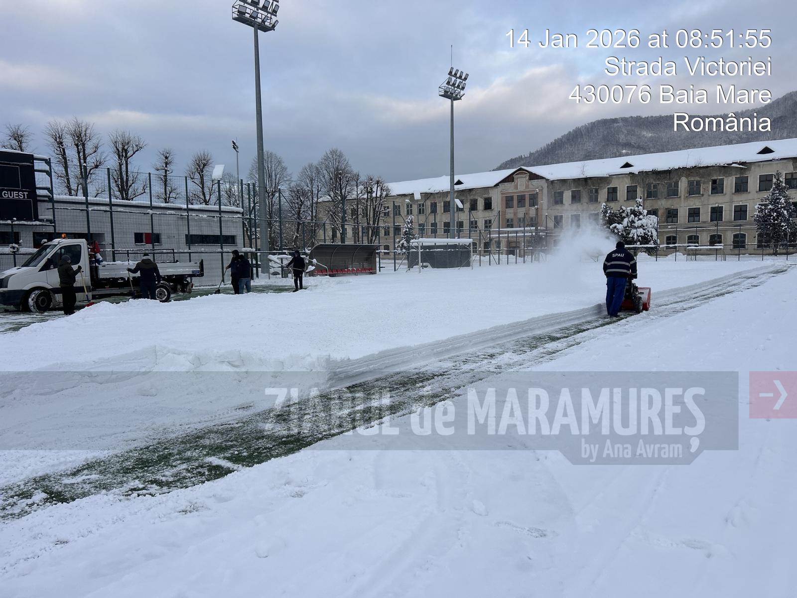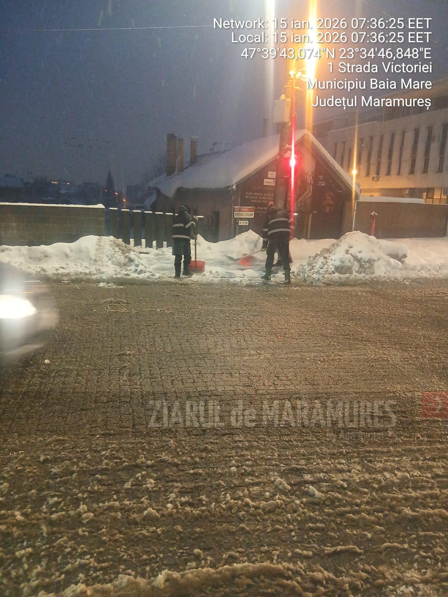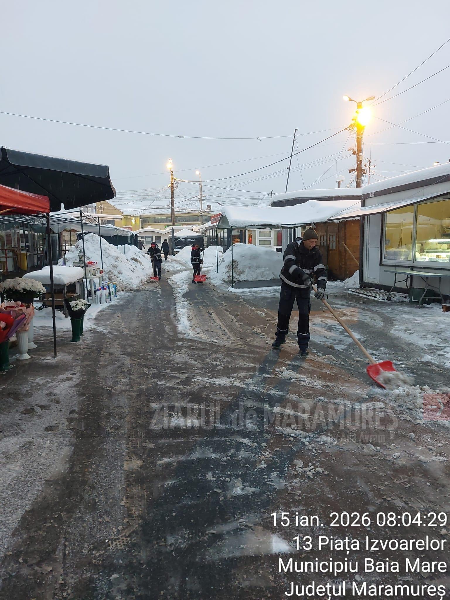 Zilele acestea s-a intervenit pe aleile din parcuri, monument Ostasul Român, in pietele aflate în administrare inclusiv Piața Izvoarele, cimitire -Horea 2 si Tanatorio, stadioane/terenuri de sport, poduri si chiar trotuare, transport zăpadă din față de la ISU MM, malul Săsarului-în toate aceste zone s-a intervenit pentru curățare si eliberare de zăpadă.