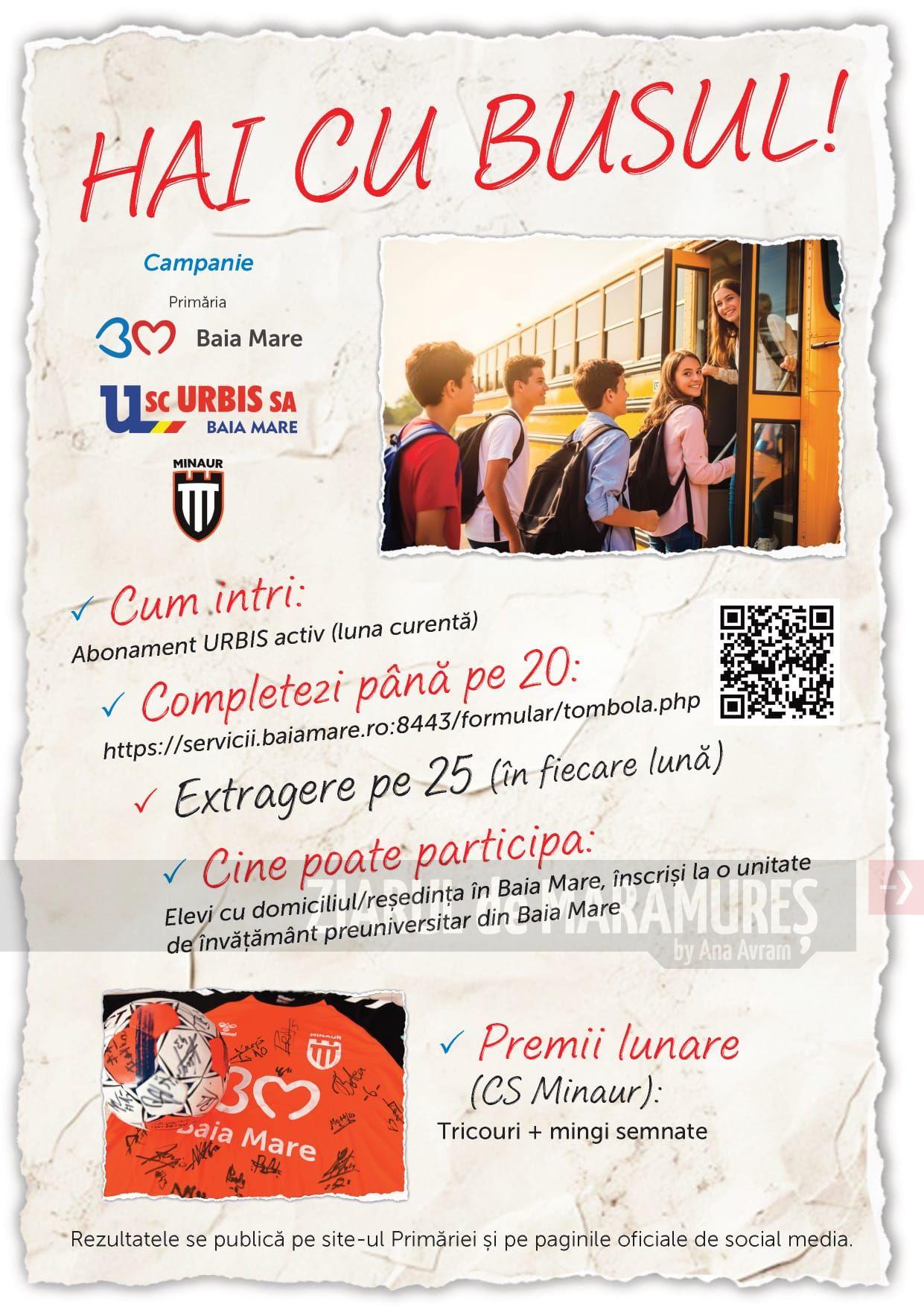 Primăria Municipiului Baia Mare, în parteneriat cu URBIS S.A. și CS Minaur, lansează campania „Hai cu busul!”, menită să promoveze utilizarea transportului public în rândul elevilor.
