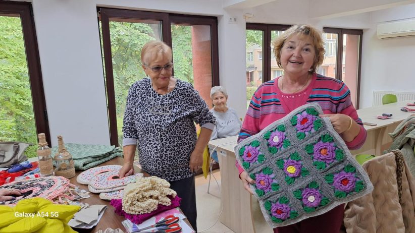 Așadar, resturi de materiale, haine care nu mai sunt purtate, bucăți de stofă și dantelă devin perne pline de culoare, covorașe care spun povești și mici decoruri menite să aducă bucurie în orice casă. Activitatea aduce bunicilor noastre emoția lucrului făcut cu drag, zâmbete și relaxare, dovedind că fiecare vârstă are darul ei și că mâinile care au crescut generații pot încă modela lumea.