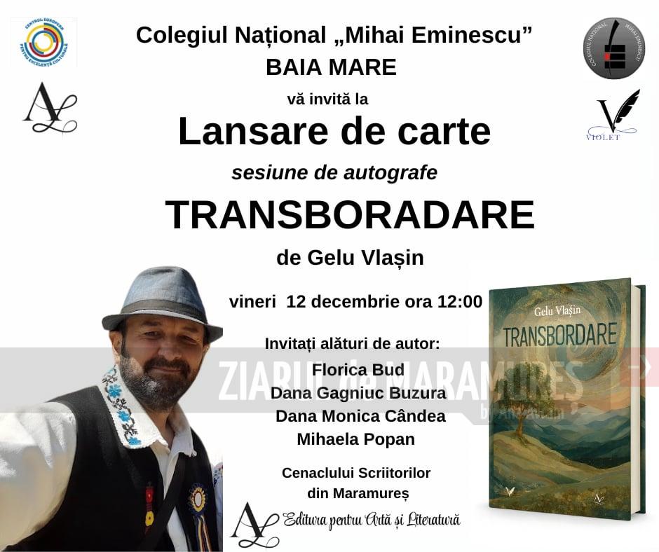 Vineri, 12 decembrie 2025, la Colegiul Național ”Mihai Eminescu” are loc o lansare de carte însoțită de o sesiune de autografe. TRANSBORDARE poartă semnătura scriitorului Gelu Vlașin și este publicată de Editura pentru Artă și Literatură.