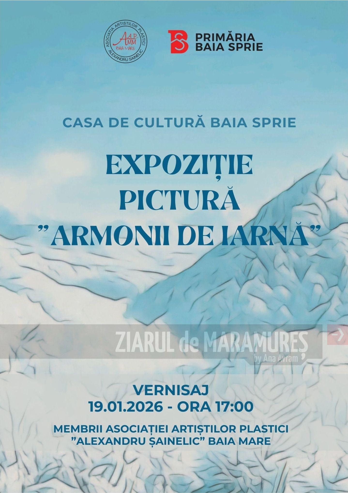 Luni, 19 ianuarie, începând cu ora 17:00, în incinta Casei de Cultură Baia Sprie se desfășoară vernisajul expoziției de pictură „Armonii de iarnă”.