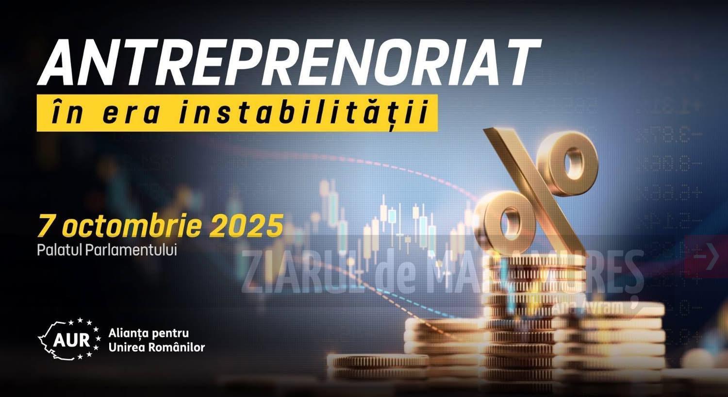 Alianța pentru Unirea Românilor (AUR) a organizat marți, 7 octombrie, la Palatul Parlamentului, conferința „Antreprenoriat – în era instabilității”, un eveniment care a reunit peste 200 de antreprenori, experți economici și reprezentanți ai mediului de afaceri din întreaga țară. Scopul dezbaterii a fost analizarea situației tot mai dificile în care se află mediul privat românesc din cauza instabilității fiscale, creșterii taxelor, inflației și birocrației excesive.