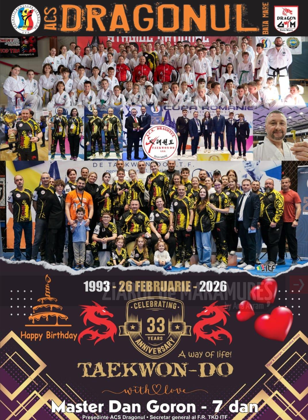 Mai exact la data de 26 februarie 2026, Clubul Sportiv Dragonul Baia Mare împlinește 33 de ani de activitate neîntreruptă, sub conducerea antrenorului emerit Master Dan Goron, 7 Dan Taekwon-do ITF, președintele clubului.