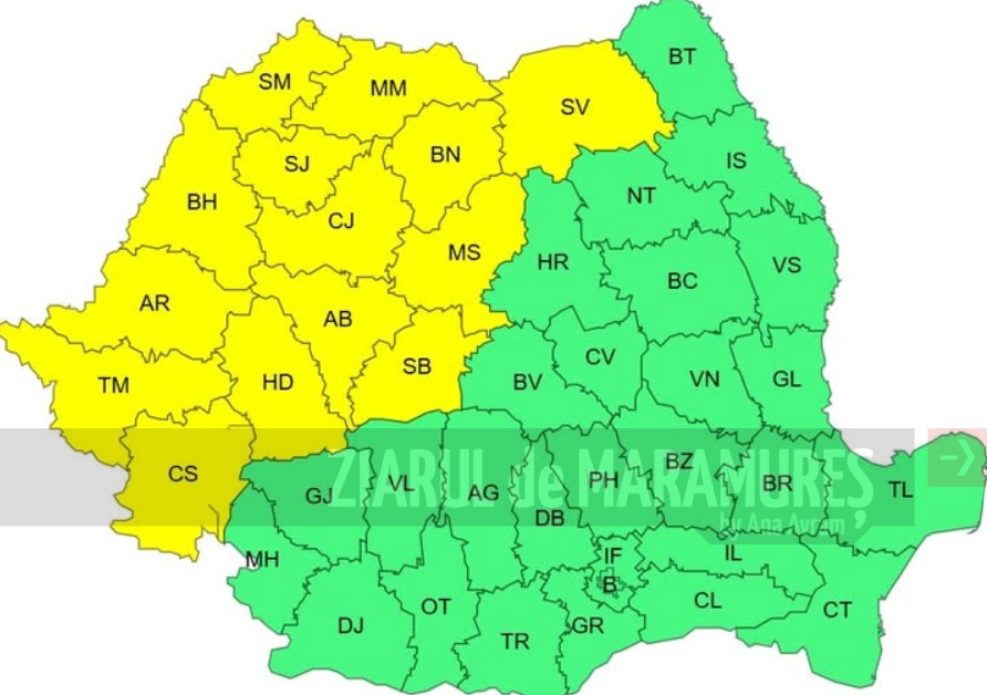 COD GALBEN. Interval de valabilitate: 05 septembrie, interval orar 12.00 – 21.00; fenomene vizate: val de căldură, temperaturi deosebit de ridicate, caniculă și disconfort termic.